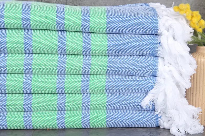Ensuring superior quality, these towels are made from 100% organic Turkish cotton, resulting in enhanced absorbency and softness. Characterized by a weight of 380 grams and dimensions of 36x67 inches (90x170 centimeters), they exhibit hand-weaving tolerances of 1-2.5 cm.