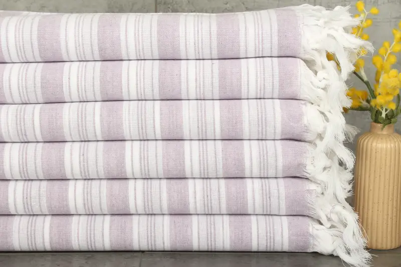 The Turkish towels and blankets are made from 100% organic Turkish cotton, ensuring a naturally dyed finish that enhances their appeal. Characterized by their superior absorbency, these towels weigh 200 grams and measure 40x71 inches (100x180 cm). The hand-woven nature of the towels results in slight dimensional tolerances of 1-2.5 cm. Customers can benefit from customization options, including personalized embroidery, with a processing time of 2 additional days. Pre-shrunk status is guaranteed, with wash cycles recommended at 30-40°C and low s...