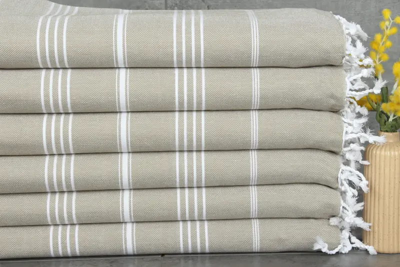 Our personalized Turkish towels and blankets are characterized by their 100% organic Turkish cotton composition, ensuring high absorbency and durability. Each piece weighs approximately 280 grams, with dimensions of 70x40 inches or 100x180 centimeters, and may exhibit hand-weaving tolerances of 1-2.5 centimeters.