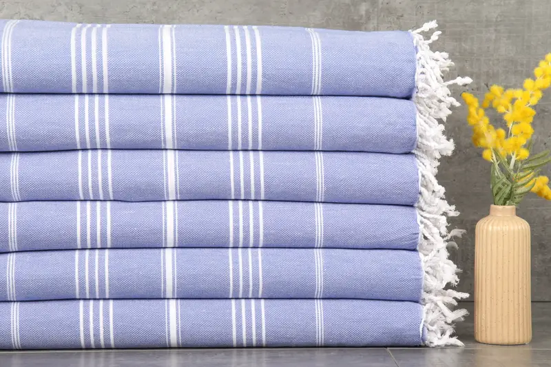 Turkish towels are characterized by their 100% organic Turkish cotton composition, ensuring natural dyeing and enhanced absorbency. Resulting in towels with a weight of 265 grams and dimensions of 40x71 inches (100x180 centimeters), each piece is crafted with a hand-weaving tolerance of 1-2.5cm. Customization options include embroidery, and pre-shrunk towels are shipped from either the US or Turkish warehouses, with detailed shipping and return policies available.