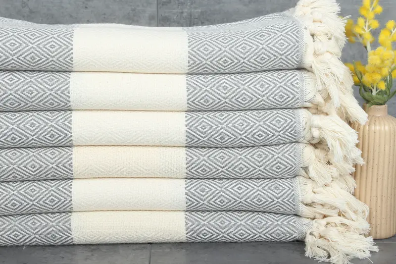 Made from 100% organic Turkish cotton, these towels exhibit superior absorbency, ensuring effective water retention and quick drying. Characterized by a fiber composition of 40x71 inches or 100x180 centimeters, the towels weigh approximately 420 grams, with a hand-weaving tolerance of 1-2.5 cm.