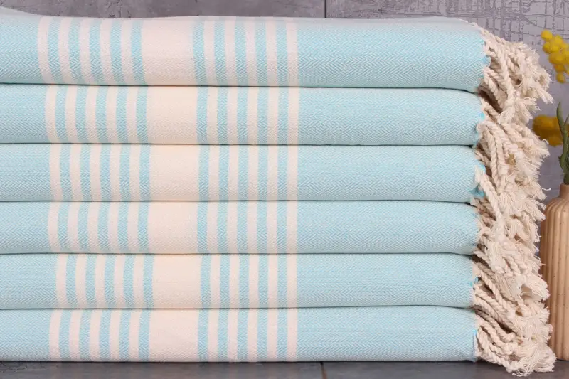 Characterized by 100% organic Turkish cotton, these towels ensure superior absorbency and softness. Ensuring durability, the towels weigh 350 grams and measure 40x67 inches (100x170 centimeters), with hand-weaving tolerances of 1-2.5 cm. Resulting in a pre-shrunk state, they maintain their form post-wash.