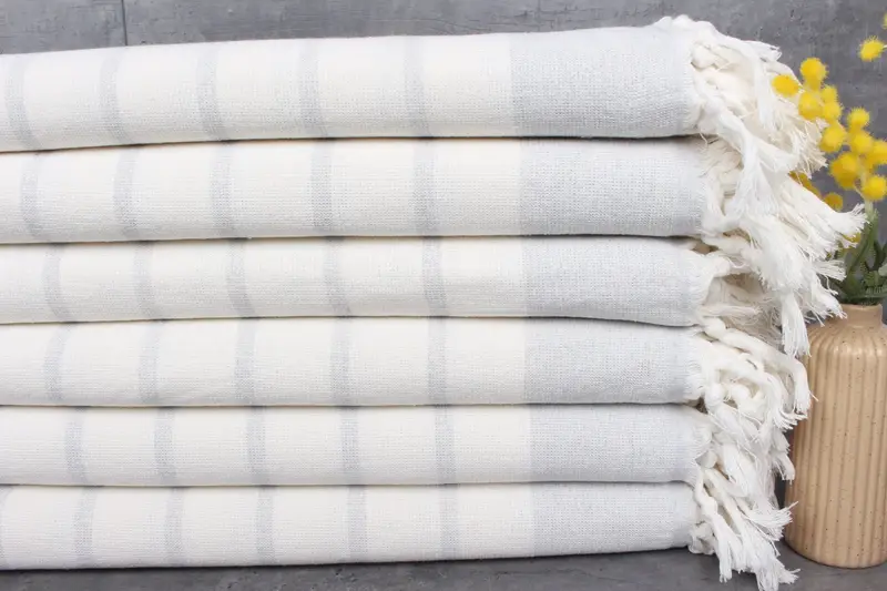 Turkish towels are characterized by their superior quality, crafted entirely from 100% organic Turkish cotton. Ensuring maximum absorbency, these towels are naturally dyed and hand-woven with tolerances between 1-2.5 cm, resulting in a plush and durable product. Measuring 39x67 inches or 98x170 centimeters, and weighing 422 grams, these towels offer versatility for numerous applications.
