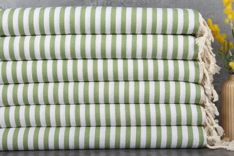 Characterized by premium Turkish cotton, these towels and blankets offer superior absorbency and softness. Each piece, weighing 100 grams, measures 18x40 inches (45x100 cm), ensuring durability while providing a lightweight feel. Tolerances in hand-weaving may vary between 1-2.5 cm, reflecting the artisanal quality of the product.