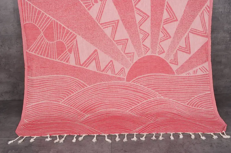 These towels are characterized by 100% organic Turkish cotton, ensuring high-quality absorbency and softness. Turkish towels and blankets weigh 320 grams, providing durability, while their organic cotton composition results in a natural color palette. Dimensions for the towels are 40x71 inches or 100x180 centimeters.