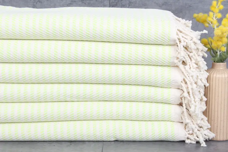 Turkish towels are characterized by their use of 100% organic Turkish cotton, ensuring natural dyeing and sustainability. Measuring 40x71 inches or 100x180 centimeters, and weighing 340 grams, these towels offer high absorbency with each wash, resulting in increased water retention. Embroidery customization and pre-shrunk status can be provided, with shipping options ranging from 2 to 6 days based on region. Free shipping is available for orders over $35 USD, and customization requests for at least 500 pieces are accommodated.