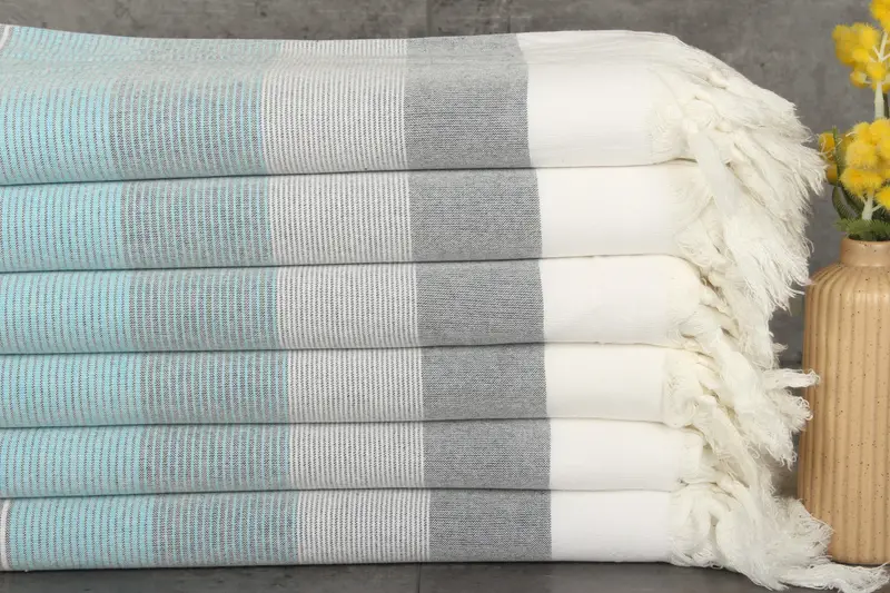 Ensuring precision, each towel and blanket adheres to specific dimensions and weights, with slight variations in hand-weaving. Measuring 67x40 inches or 170x100 centimeters, and weighing 260 grams, these products maintain consistent quality.