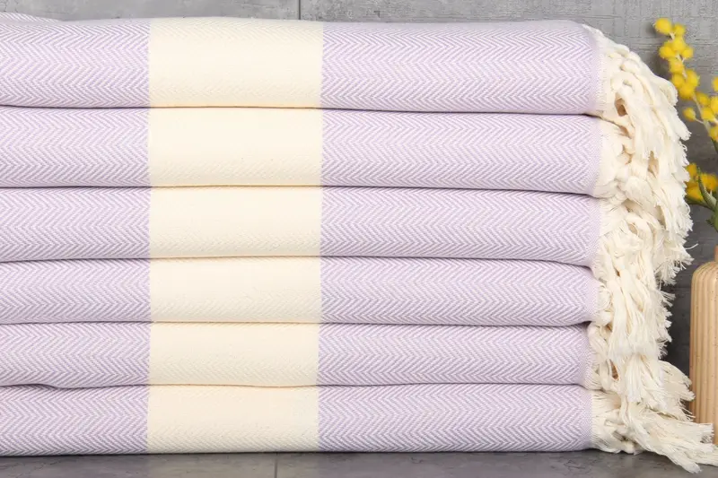 Turkish towels are distinguished by their %100 organic Turkish cotton composition, ensuring superior absorbency and quality. Characterized by a fiber weight of 430 grams, these towels measure 71x40 inches (180x100 centimeters) and exhibit a natural dye finish with a slight hand-weaving tolerance of 1-2.5 cm. Each piece is pre-shrunk, enhancing durability and maintaining consistent dimensions post-wash.