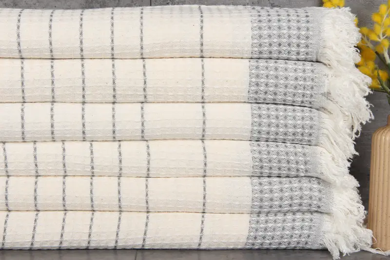 Ensuring superior quality, the Turkish towel is crafted from 100% organic Turkish cotton, naturally dyed, and characterized by exceptional absorbency, enhancing its utility over repeated uses. Each towel measures 40x71 inches or 100x180 centimeters, weighing 420 grams, with hand-weaving allowing for tolerances of 1-2.5 cm. Resulting in a pre-shrunk status, these towels are ready for immediate use.