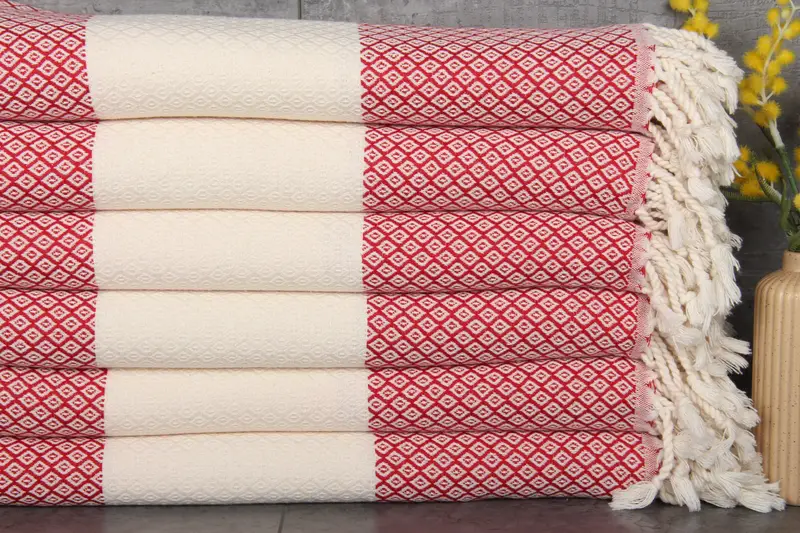 Characterized by 100% organic Turkish cotton, the towels are meticulously hand-woven, ensuring a soft texture and enhanced durability. These towels, weighing 380 grams, offer superior absorbency with each wash, enhancing their utility over time. Resulting in a product dimension of 36x71 inches or 90x180 centimeters, slight hand-weaving tolerances of 1-2.5 cm are permissible.