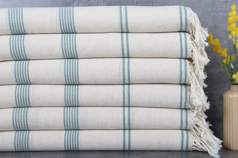 The product is crafted from 100% organic Turkish cotton, ensuring both sustainability and superior absorbency. Each towel is meticulously woven, resulting in a weight of 290 grams and dimensions of 36x79 inches (90x200 centimeters), with slight hand-weaving tolerances of 1-2.5cm. Customization options include embroidery and personalization, subject to specific lead times. Pre-shrunk status and detailed shipping protocols are in place, offering expedited delivery options and comprehensive return policies. For US customers, orders are fulfilled f...