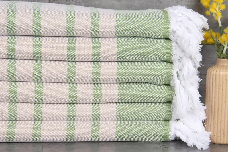 Turkish towels are characterized by their use of 100% organic Turkish cotton, naturally dyed and ensuring superior absorbency. Each towel is dimensioned at 36x67 inches or 90x170 centimeters, weighing 380 grams, with hand-weaving tolerances of 1-2.5 cm. These towels are pre-shrunk and can be custom-embroidered, shipped worldwide with various delivery options. Standard care includes washing separately at 30-40°C, with a preference for hanging to dry to prolong life. Custom orders require a minimum of 500-1000 pieces, with expedited shipping avai...