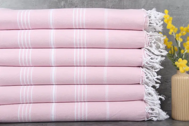 Turkish towels are characterized by their 100% organic Turkish cotton composition, ensuring high absorbency and natural dye colors. Each towel is precisely 40x71 inches or 100x180 centimeters, weighing 265 grams, with tolerances in hand-weaving ranging up to 2.5 centimeters. Embroidery customization is available, with same-day completion for urgent orders. Pre-shrunk status is achieved after 2-3 initial washes, after which they can be washed in cycles with a temperature range of 30-40 degrees Celsius. Orders over $35 include free shipping, with...