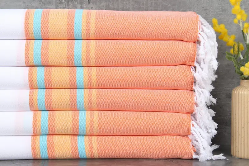 The Turkish towels are made from 100% organic Turkish cotton, ensuring natural hues and superior absorbency. Each towel measures 40x71 inches or 100x180 centimeters, with a weight of 310 grams, hand-woven with a tolerance of 1-2.5 cm. Custom embroidery services can be requested with an additional lead time of two days. Orders are pre-shrunk before shipping to maintain dimensions. Fulfilled from the US warehouse for domestic customers, international shipments originate from Turkey. Estimated delivery times vary by region, with free shipping offe...