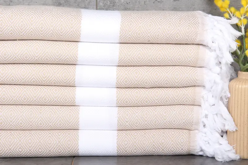 Characterized by organic Turkish cotton, these towels are entirely made from 100% natural dyed materials, ensuring durability and breathability. Measuring 40x71 inches or 100x180 centimeters, the towels have a weight of 360 grams, resulting in a plush texture. Tolerance for hand-weaving is set between 1-2.5 cm, ensuring quality consistency.