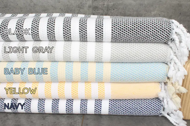 Organic cotton construction characterizes the towel, ensuring high absorbency and sustainability. Weighing 380 grams, these towels measure 67x40 inches (170x100 centimeters) and are hand-woven with a tolerance of 1-2.5 cm. Embroidered customization and pre-shrunk status are available, with prompt shipping from either the US or Turkey. For orders over 35 USD, free shipping is provided, and international orders benefit from expedited delivery options via DHL Express or FedEx. The company offers discounts for wholesale inquiries and supports retur...