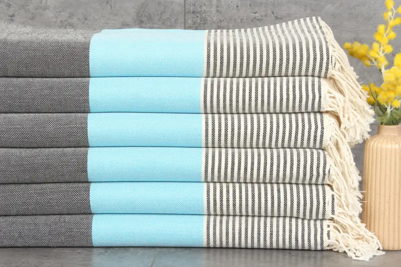 Made from 100% organic Turkish cotton, the towels are naturally dyed and renowned for their superior absorbency. Ensuring durability and comfort, these towels weigh 298 grams and measure 40x69 inches (100x174 centimeters). Hand-woven with tolerances of 1-2.5 cm, they exhibit slight variations ensuring a unique product.