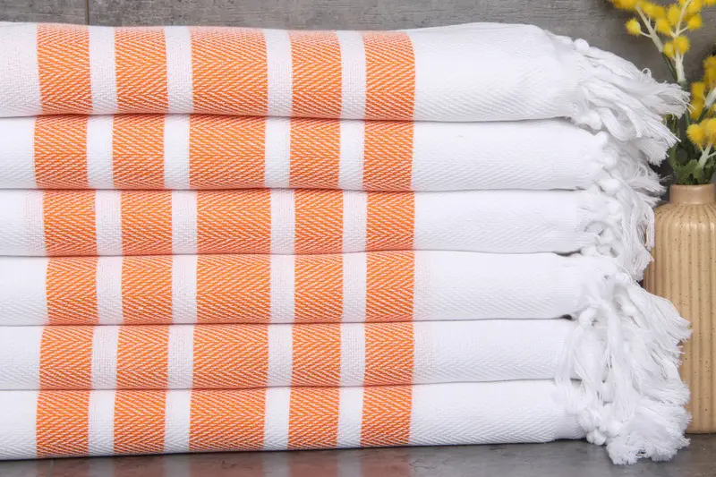 Characterized by their organic cotton composition, the Turkish towels are meticulously crafted to enhance absorbency through each wash. These towels, weighing 380 grams and measuring 40x71 inches or 100x180 centimeters, are hand-woven, allowing for minor tolerances of 1-2.5cm. Ensuring a pre-shrunk status, these towels are ideal for a variety of applications including beach, bath, kitchen, and picnics.