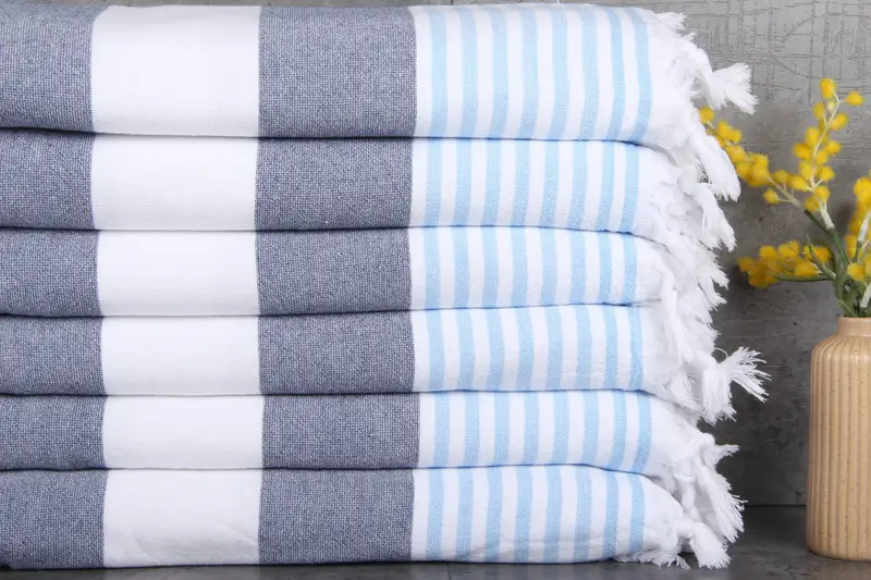 Crafted from 100% organic Turkish cotton, these towels are characterized by their superior absorbency and durability. Weighing 400 grams and measuring 36x67 inches (90x170 centimeters), they ensure exceptional softness and functionality. The cotton fibers, hand-woven with a tolerance of 1-2.5cm, absorb water better with each wash, resulting in enhanced absorbency over time.