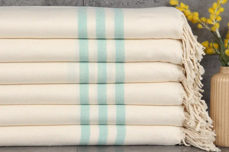 Organic Turkish cotton characterizes these bath towels, ensuring a natural and eco-friendly product. Resulting in heightened absorbency and durability, these towels are perfect for various uses including spa and yoga. Each towel, weighing 250 grams and measuring 40x71 inches, is meticulously crafted by hand, allowing for natural tolerances of 1-2.5cm.