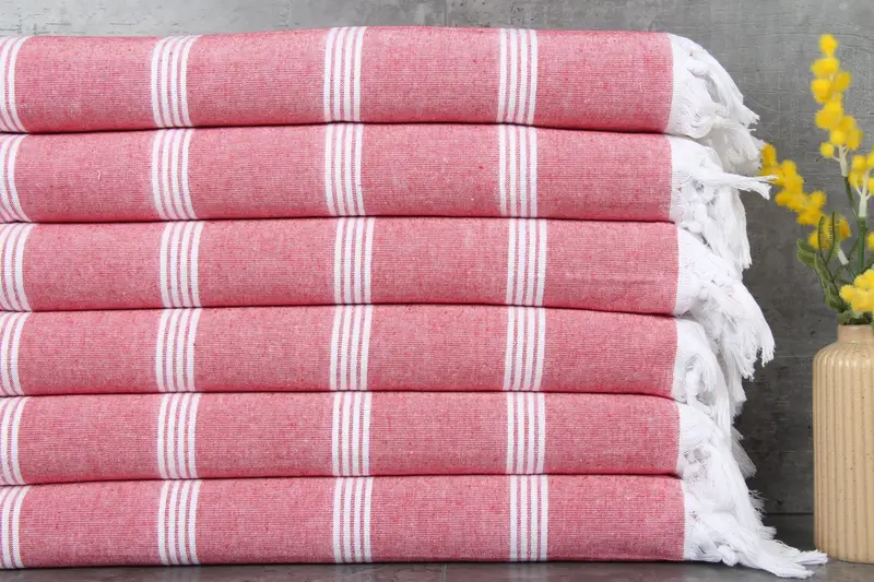 The Turkish Beach Towel is characterized by its organic cotton composition, resulting in high absorbency. Weighing 240 grams, it measures 30x69 inches (75x175 centimeters). Weaving tolerances may vary by 1-2.5 cm due to manual production.