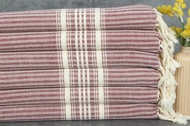 Turkish cotton towels, renowned for their exceptional absorbency and durability, are woven from 100% organic Turkish cotton. Ensuring superior water absorption and longevity, these towels exhibit natural hues due to the use of colorants derived from plants. Each piece measures 18x40 inches or 45x100 centimeters, with a weight of 90 grams, characterized by slight hand-weaving tolerances of 1-2.5cm.
