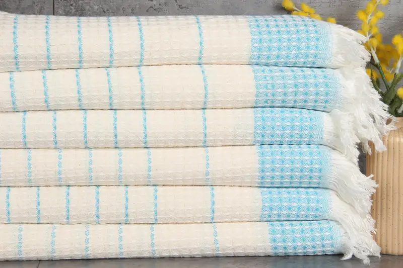 Characterized by 100% organic Turkish cotton, the Turkish towels ensure a natural dyeing process, resulting in vibrant and consistent colors. These towels weigh 420 grams and are sized at 40x71 inches or 100x180 centimeters, with hand-weaving tolerances of 1-2.5 centimeters. Their initial wash requires separate treatment from other garments to preserve their integrity.