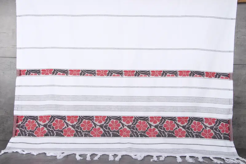 Turkish cotton towels, ensuring superior quality and durability. Characterized by a 300 grams weight, these towels offer absorbency that increases with each wash. Resulting in towels measuring 40x71 inches or 100x180 centimeters with 1-2.5cm hand-weaving tolerances.