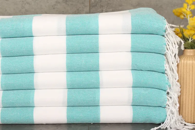 Ensuring superior quality, the hand towel is composed of 100% organic cotton, resulting in high absorbency and durability. Characterized by a dimension of 18x40 inches or 45x100 centimeters, and a weight of 80 grams, the hand-weaving process allows for a tolerance of 1-2.5 cm.