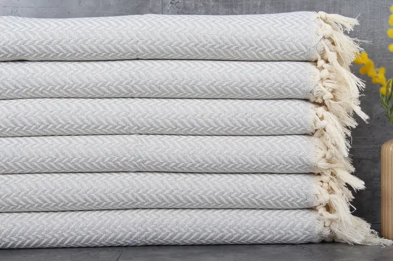 The Turkish Hand Towel is characterized by its %100 Organic Turkish Cotton construction, ensuring superior absorbency and durability. Each towel weighs 100 grams, measuring 18x36 inches (45x90 centimeters), with slight hand-weaving tolerances of 1-2.5 cm. This meticulous process results in a pre-shrunk, ready-to-use product.