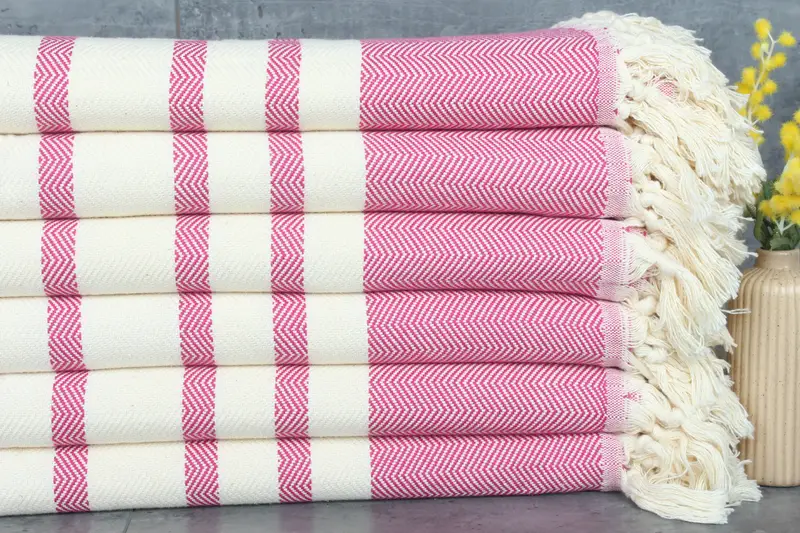 Turkish cotton is prominent in the composition of the blanket, ensuring high absorbency and durability. These blankets, with a weight of 1400 grams, feature a dimension of 79x95 inches or 200x240 centimeters, characterized by a slight hand-weaving tolerance of 1-2.5 cm. Resulting in a product with a natural and slightly varied texture.