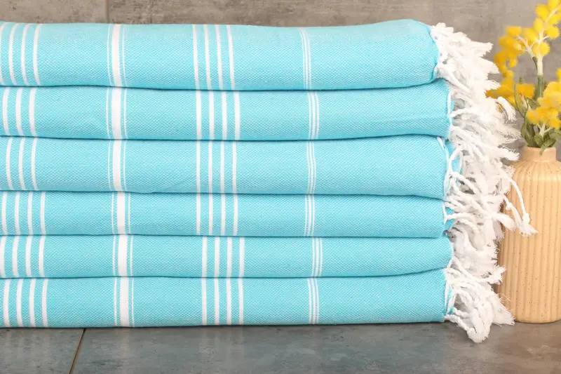 The product utilizes Turkish cotton, ensuring a blend of softness and durability. Characterized by high absorbency, the material comprises 100% organic and recycled cotton fibers, achieving a weight of 600 grams. Each blanket is meticulously hand-woven, with dimensions of 63x87 inches (160x220 centimeters), allowing for slight variances of up to 2.5cm.