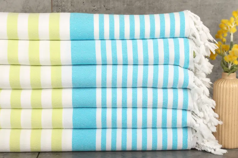 Produced from 100% organic cotton, the Turkish towels and blankets exhibit superior absorbency. Cotton fibers absorb water more effectively post-wash, ensuring increased durability and enhanced performance.