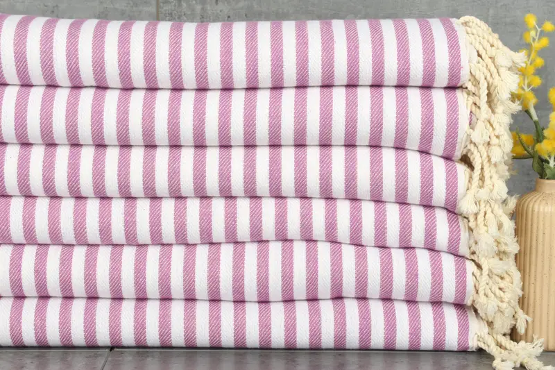 Our product line includes a 75x103-inch purple cotton blanket, handcrafted for personalized gifting. Characterized by its luxurious blend of organic Turkish cotton, ensuring superior absorbency and durability. Each blanket weighs 800 grams, exhibiting precise craftsmanship and minimal weaving tolerances of 1-2.5cm.