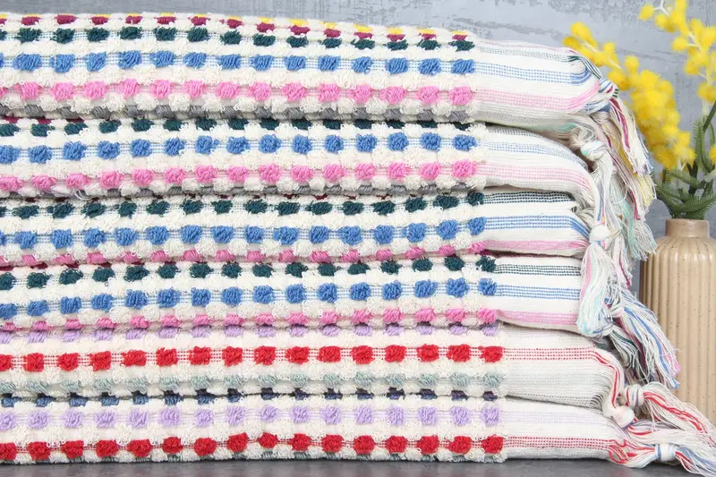 The Turkish towels, blankets, and hand towels are characterized by 100% organic Turkish cotton, ensuring natural dyeing and superior absorbency. These towels, with dimensions of 20x40 inches/50x100 centimeters and weight of 250 grams, have tolerances of 1-2.5cm due to hand-weaving techniques. Shipment and customization include embroidery options, and pre-shrunk towels offer a ready-to-use product. Orders over 35 USD from the US warehouse enjoy free shipping, with expedited delivery options available globally.
