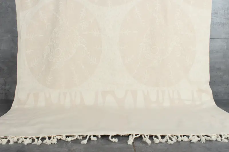 Our Turkish blankets and throws are crafted from 100% organic Turkish cotton, ensuring high absorbency and durability. Each piece features dimensions of 79x99 inches or 200x250 centimeters, with a weight of 1250 grams. The hand-weaving process results in tolerances of 1-2.5 centimeters.