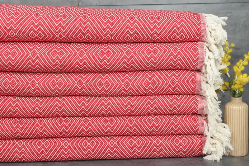 Turkish cotton blankets and towels, characterized by their high-quality fiber composition and superior absorbency, ensuring a durable and soft product. These items are crafted from a blend of recycled and organic cotton, resulting in a material that absorbs moisture efficiently and becomes more absorbent with each wash.