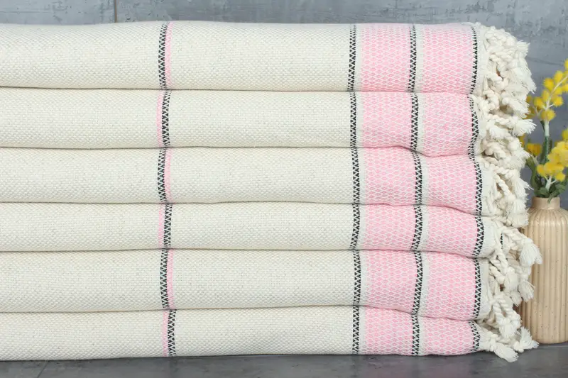 Turkish towels and blankets are known for their high-quality organic cotton fibers, ensuring superior absorbency and durability over multiple washes. Weighing approximately 1200 grams, these towels and blankets come in standard dimensions of 103x95 inches or 240x260 centimeters. Tolerable hand-weaving variations of 1-2.5 cm may occur, ensuring a unique finish for each piece.