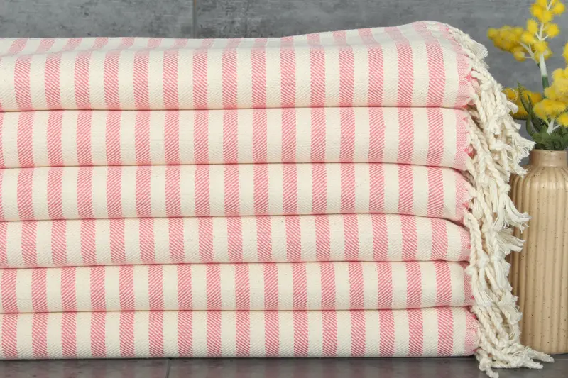 Ensuring durability and absorbency, these towels are made from 100% organic Turkish cotton. Weighing 130 grams, the towels feature dimensions of 40x24 inches or 60x100 centimeters. Resulting in a hand-weaving tolerance of 1-2.5 centimeters, the towels exhibit meticulous craftsmanship.
