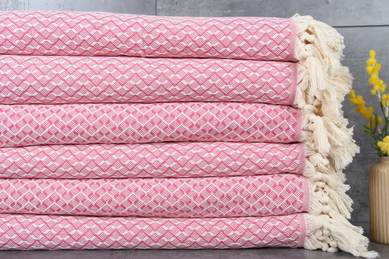Crafted with 100% organic Turkish cotton, the blankets and throws are characterized by their natural dye process, ensuring a soft and absorbent fabric. Each piece measures 91x95 inches or 230x240 centimeters, weighing approximately 1162 grams. The hand-weaving process introduces tolerances of 1-2.5 cm, providing a unique and artisan touch to each item.