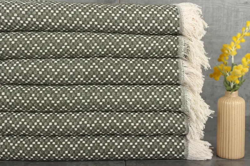 Characterized by a blend of 100% organic and recycled cotton, the blankets ensure a sustainable and soft touch. Resulting in an absorbency that enhances with each wash, these cotton blankets also comply with GSM specifications, providing an optimal balance of durability and comfort. Ensuring a pre-shrunk status, the blankets are meticulously woven, allowing for slight hand-weaving tolerances of 1-2.5 cm.
