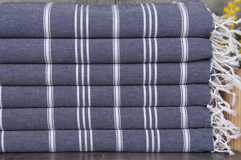 Organic Turkish cotton ensures a superior quality towel, characterized by its natural dye and enhanced absorbency with each wash. Each towel measures 24x40 inches, corresponding to 60x100 centimeters, and weighs 100 grams, allowing for a balance of durability and comfort. Hand-weaving tolerances range from 1 to 2.5 centimeters.