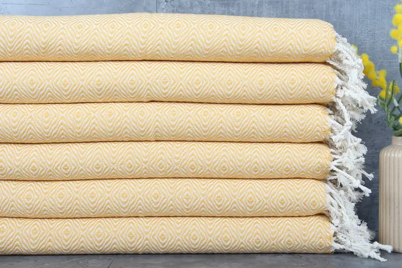 Comprised of 100% organic Turkish cotton, the towels exhibit high absorbency, ensuring effective moisture wicking and durability. Characterized by dimensions of 18x36 inches or 45x90 centimeters and weighing 90 grams, the towels accommodate a natural tolerance of 1-2.5cm in hand-weaving.
