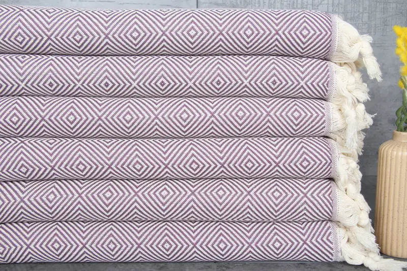 Turkish towels are characterized by their 100% organic Turkish cotton composition, ensuring superior absorbency and softness. Resulting in a towel that weighs 120 grams, these towels are crafted with meticulous hand-weaving techniques, allowing for tolerances of 1-2.5 cm in dimensions. Each Turkish towel measures 20x36 inches or 50x90 centimeters, offering a versatile size suitable for multiple applications.