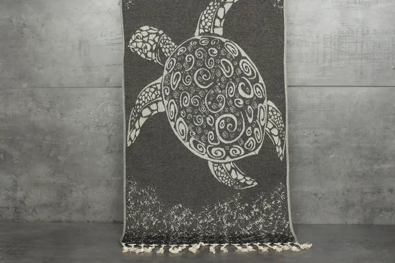 Characterized by an organic cotton composition, the Turkish Towel features a natural dyeing process resulting in vibrant yet subdued color tones. Weighing 120 grams, it measures 18x36 inches or 45x90 centimeters. Each towel is hand-woven, with tolerances of 1-2.5 cm in dimensions.