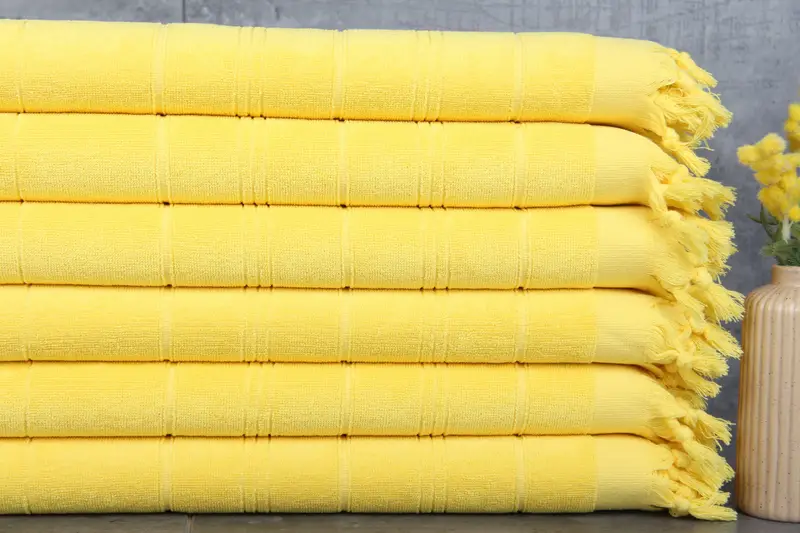 Organic Turkish cotton towels are characterized by their exceptional absorbency and durability, resulting in an optimal hand-feel and longevity. Ensuring high-quality fiber composition, these towels weigh 115 grams with dimensions of 18x40 inches (45x100 cm), and exhibit hand-weaving tolerances of 1-2.5 cm.