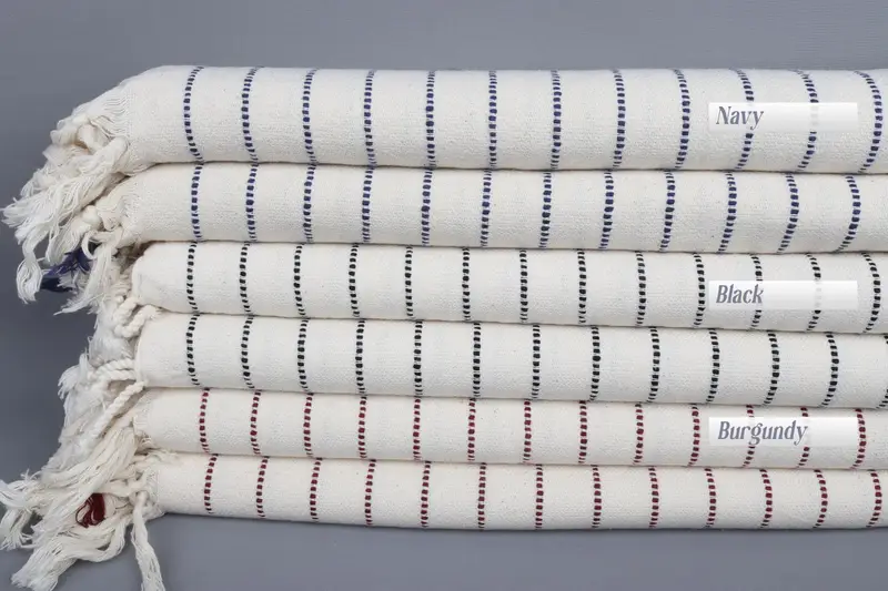 Our product line includes a 36"x67" cotton towel characterized by its use of organic cotton, resulting in superior absorbency and durability. Each towel is woven from Turkish cotton on looms, resulting in a handmade piece that may vary by ±2" or 5cm due to the weaving process. Weighing 280 grams, these towels are designed for a variety of uses.