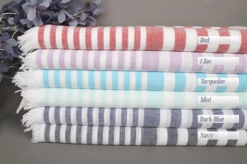 The bath towel is characterized by its superior Turkish cotton composition, ensuring high absorbency and durability. Resulting in a weight of 200 grams, the towel measures 67x40 inches or 170x100 centimeters with a tolerance of ± 2 inches or 5 cm. The woven fibers and handmade construction result in a lightweight yet robust textile.