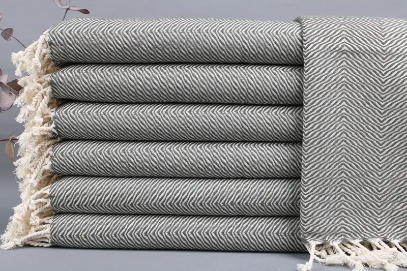 The Turkish towels are produced from organic Turkish cotton, ensuring high absorbency and durability. Measuring 20x40 inches or 50x100 centimeters, these towels weigh approximately 100 grams with a weaving tolerance of ± 2 inches or 5 centimeters. Each towel can be customized through embroidery, allowing personalization with letters, names, or logos.