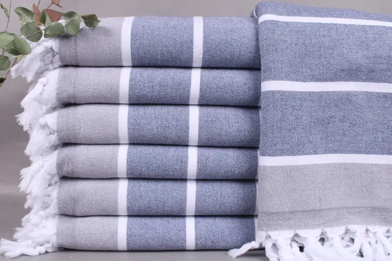 Weaving technology ensures the creation of high-quality Turkish towels, utilizing organic Turkish cotton fibers, resulting in superior absorbency. The towels measure 36x67 inches or 90x170 centimeters with a weight of 400 grams, and slight weaving tolerances of up to 5 centimeters may apply.